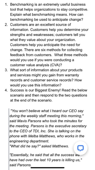 Solved 1 Benchmarking Is An Extremely Useful Business Tool Chegg Com